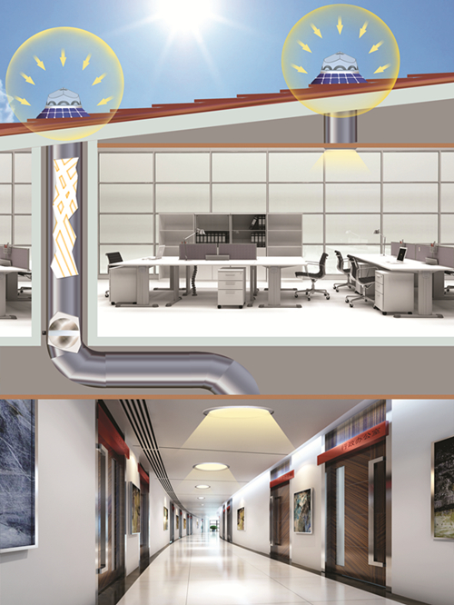 附加自主研發(fā)的自然采光-光伏-光電一體化照明系統(tǒng)可避免重復(fù)安裝電力照明系統(tǒng)